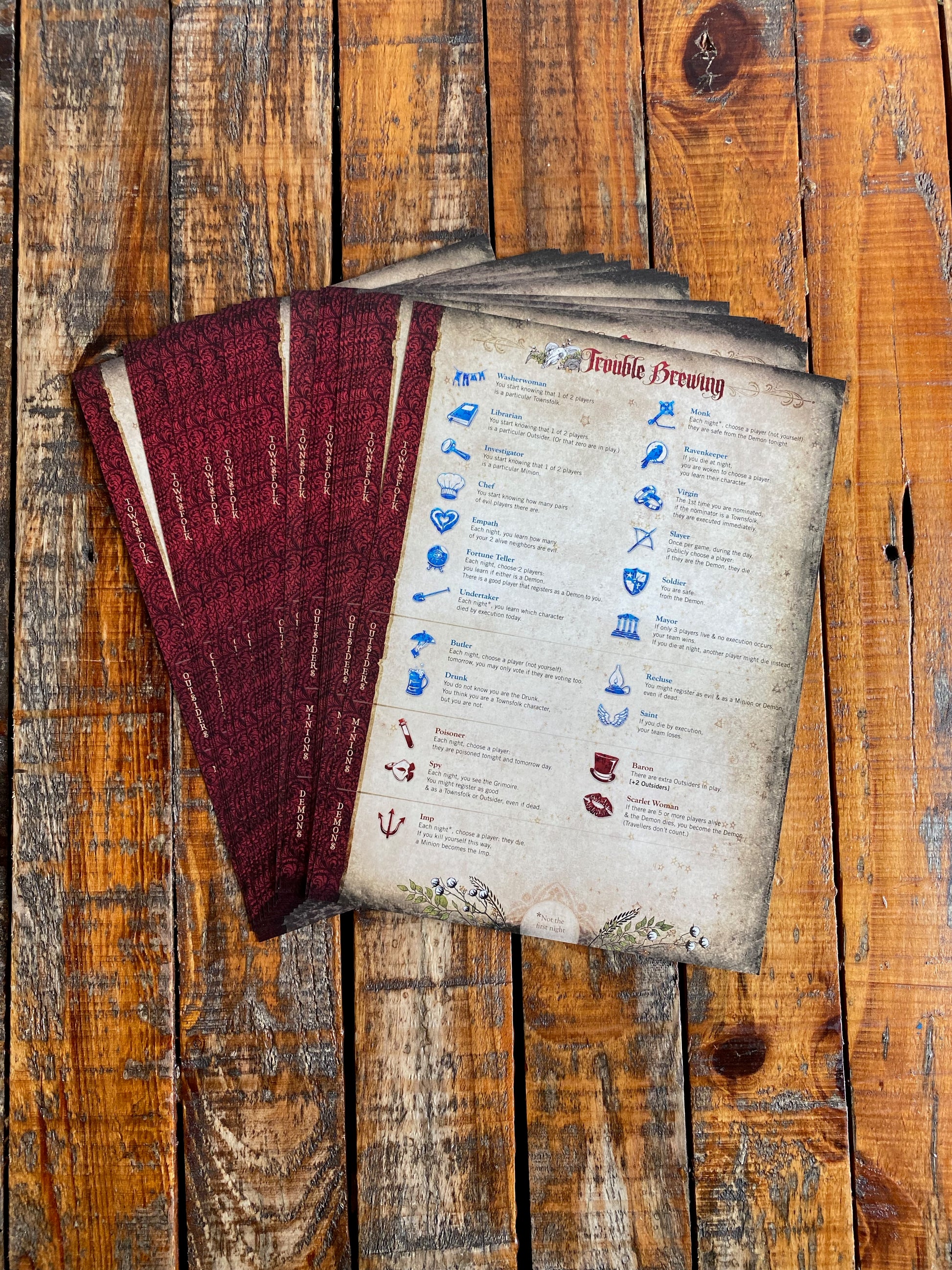 A pack of 20 replacement character sheets. Select from the three base editions - Trouble Brewing, Bad Moon Rising and Sects & Violets. Discount available when multiple packs are bought together.